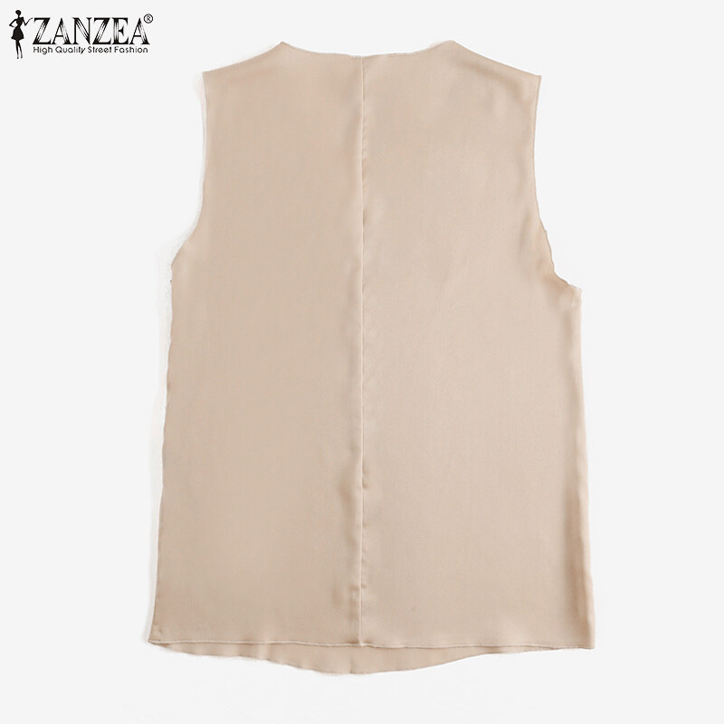 Celmia ZANZEA女式无袖缎面丝绸上衣衬衫纯色OL办公商务背心#11